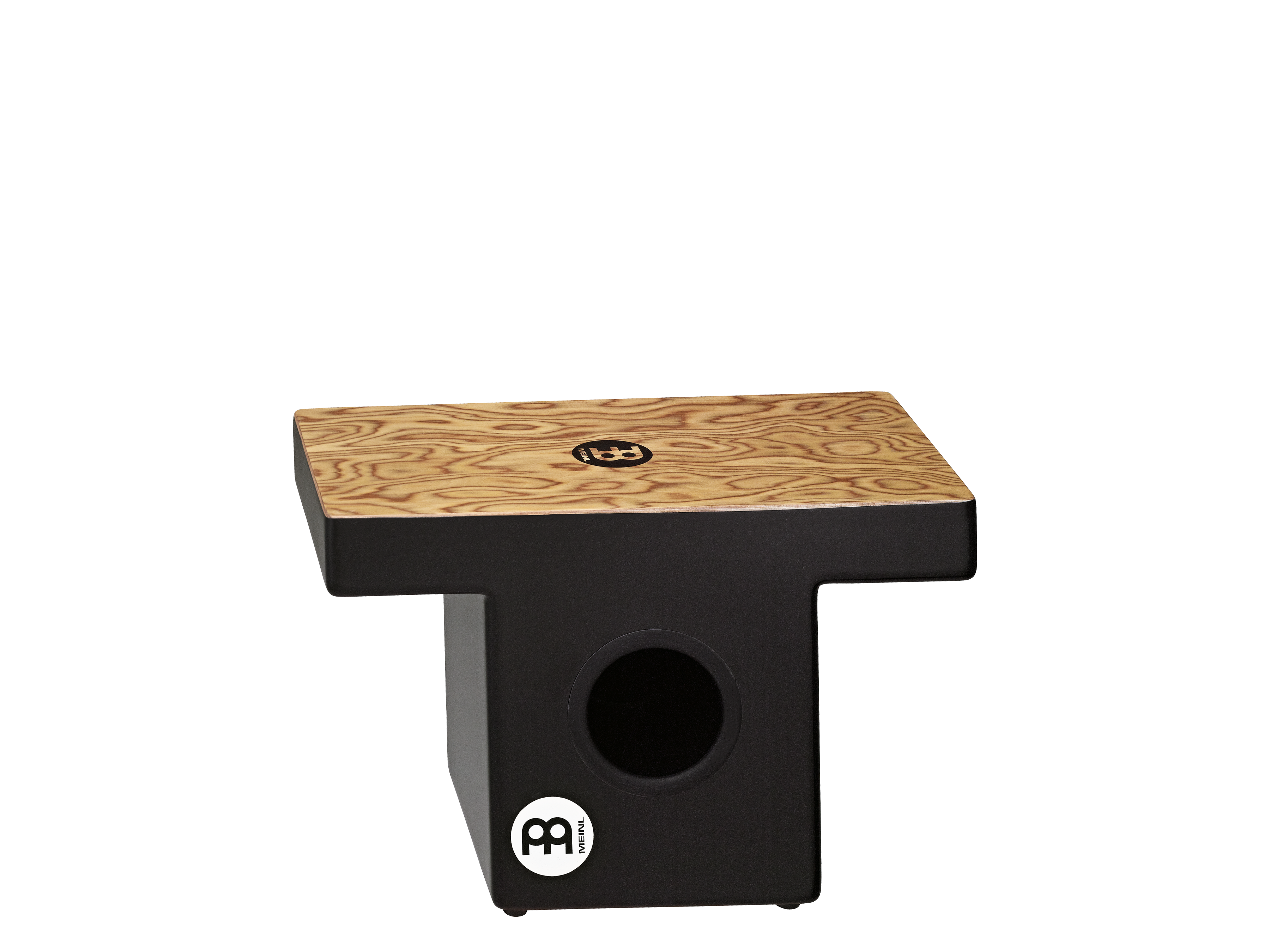 Slap top cajon, cuerda interna, superficie para tocar madera Makah-Burl, cuerpo de fibra de densidad media, boca central para proyeccion sonora